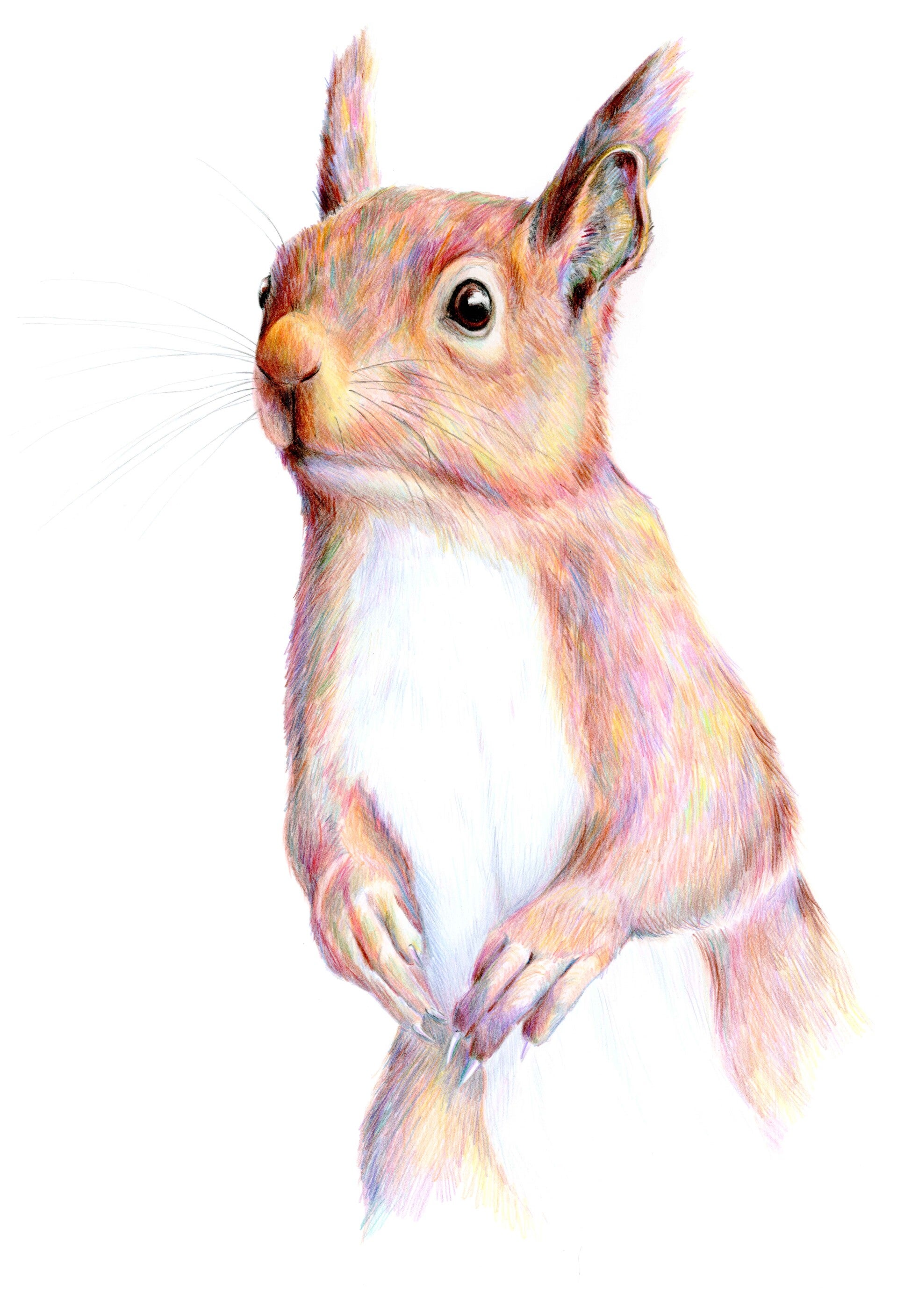 Nieuwsgierigheid - eekhoorn in kleurpotlood