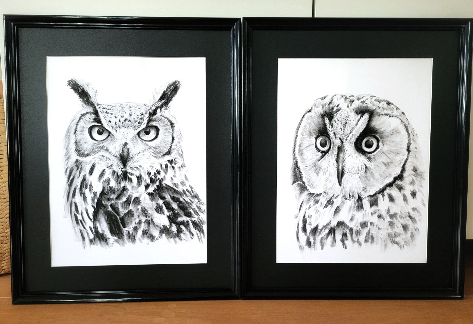 Let op: houtskool is een heerlijk viezig medium en kan daarom altijd af blijven geven. Ik fixeer mijn tekeningen met een speciaal fixatief, maar door mijn manier van dikke vegen en lagen aanbrengen, moeten de tekeningen altijd achter glas worden ingelijst. Het liefst in een baklijst/achter een passe-partout (waardoor het glas niet direct tegen het papier aan komt).