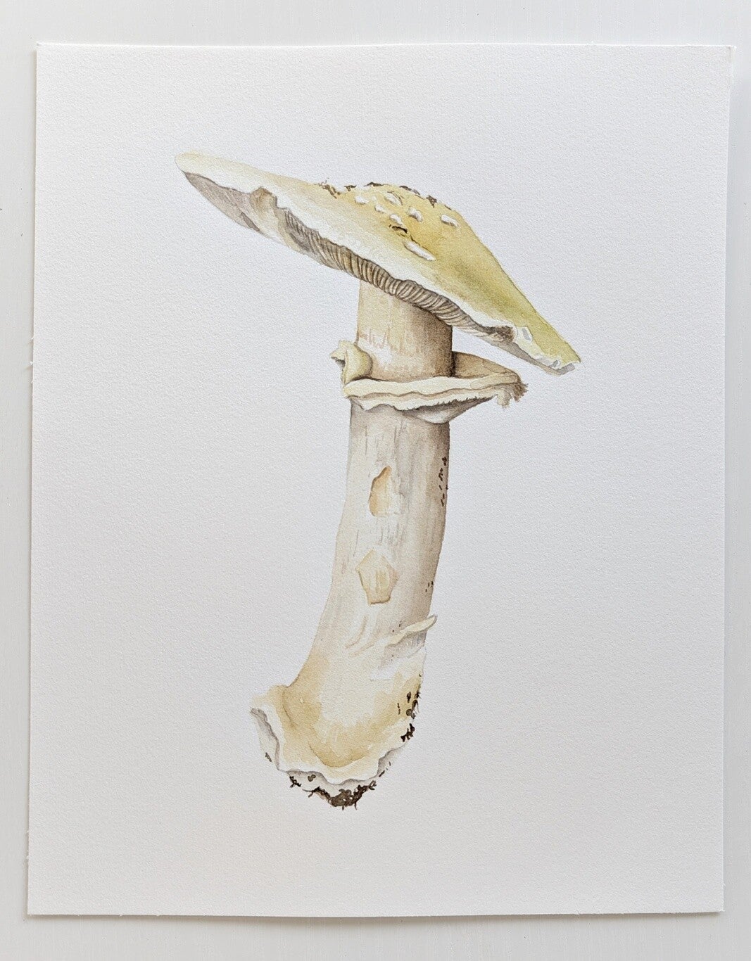 Deze gele knolamaniet schilderde ik voor de paddenstoelenposter.