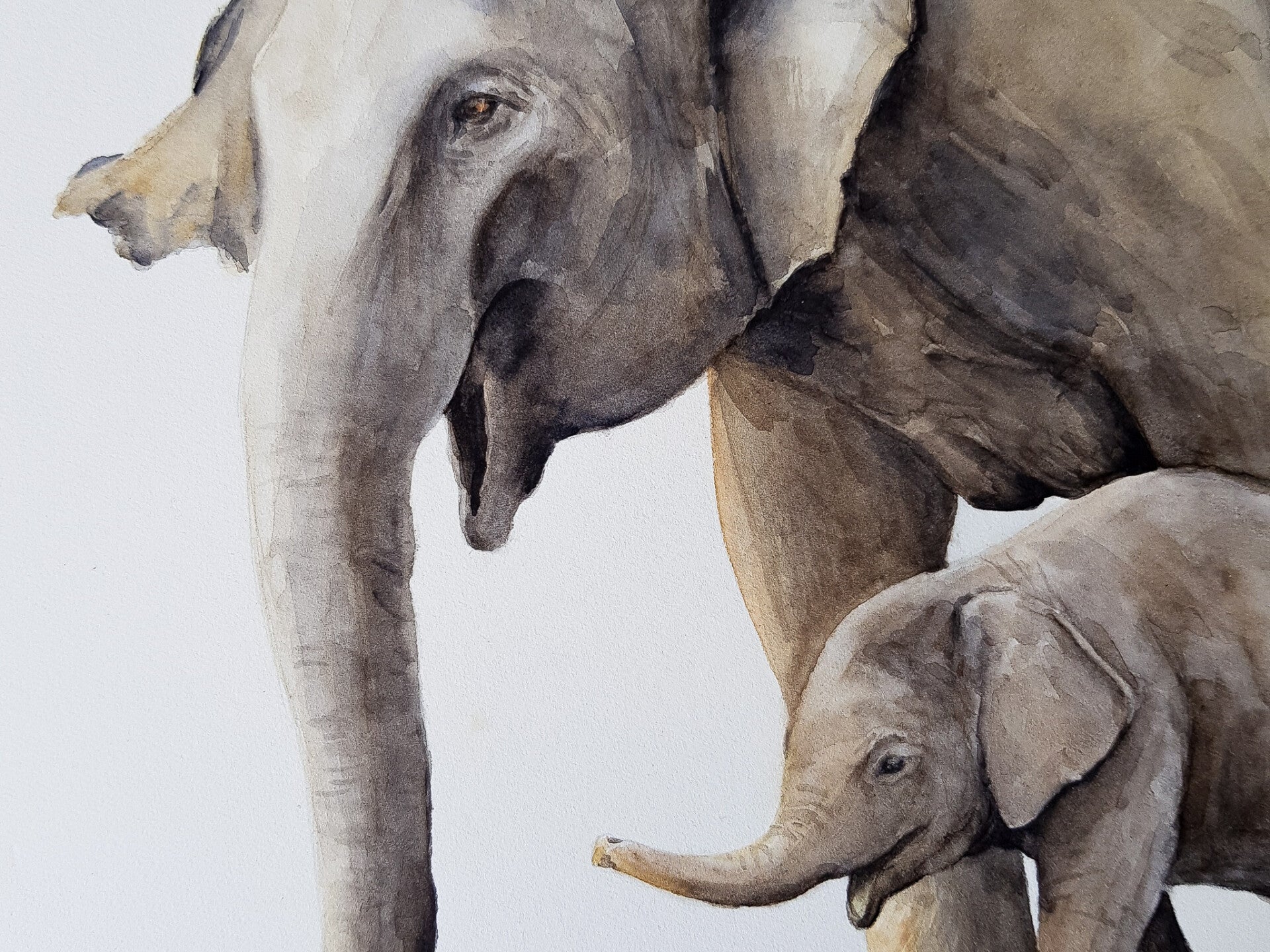 Bij deze aquarel is het schilderstape eromheen gelaten zodat de afbeelding mooi achter een passe partout valt bij inlijsting.
