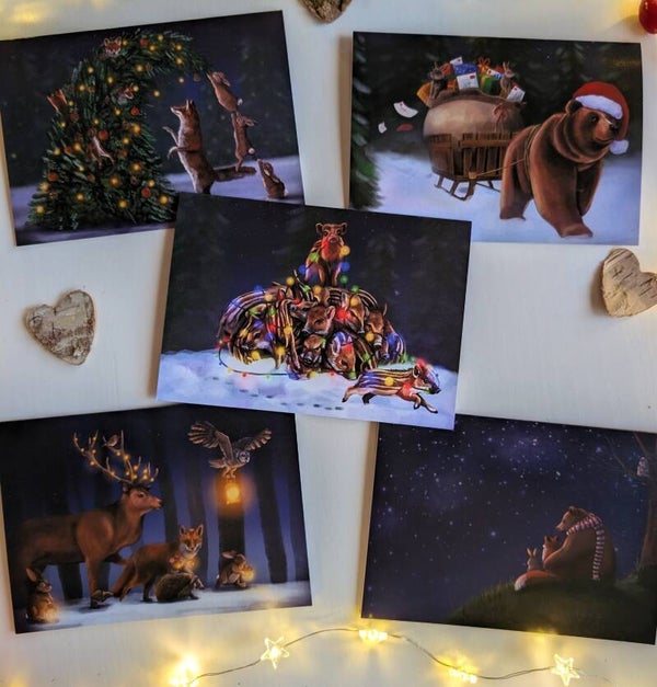 De nieuwe kerstkaartenset van 2025! Het begint een traditie te worden: elk jaar ontwerp ik een set kerstkaarten. Dit jaar koos ik voor warme, knusse thema's met bosdieren in de hoofdrol.