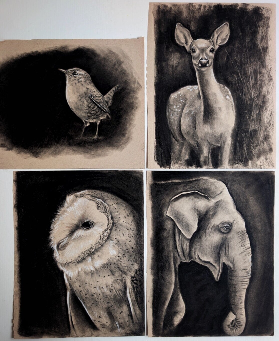 Houtskool tekening van een uil