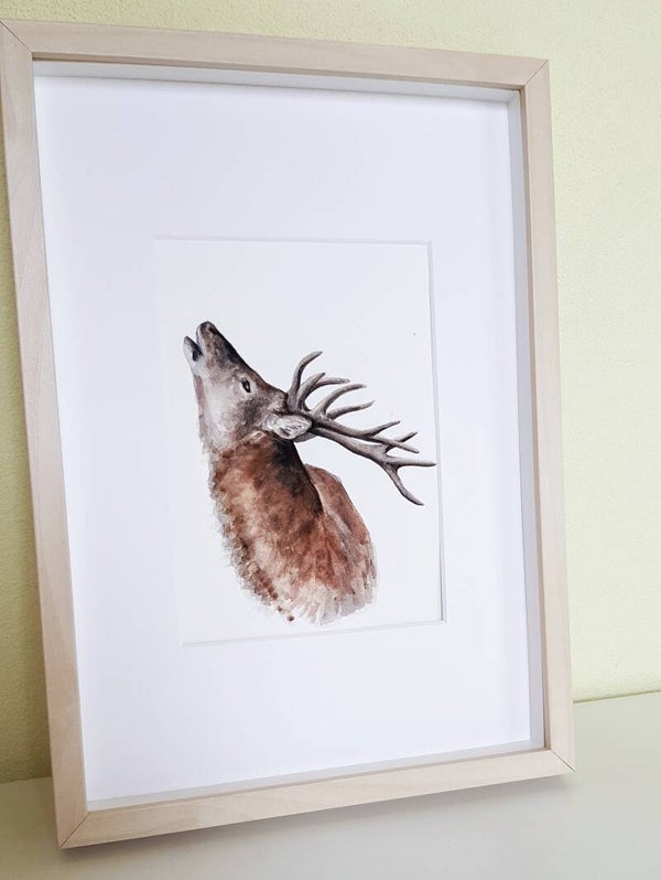 Dit hert maakt onderdeel uit van een serie kleurstudies die ik maakte in oktober 2020. Deze serie bestaat uit drie vosjes (waarvan twee reeds verkocht) en dit edelhert.