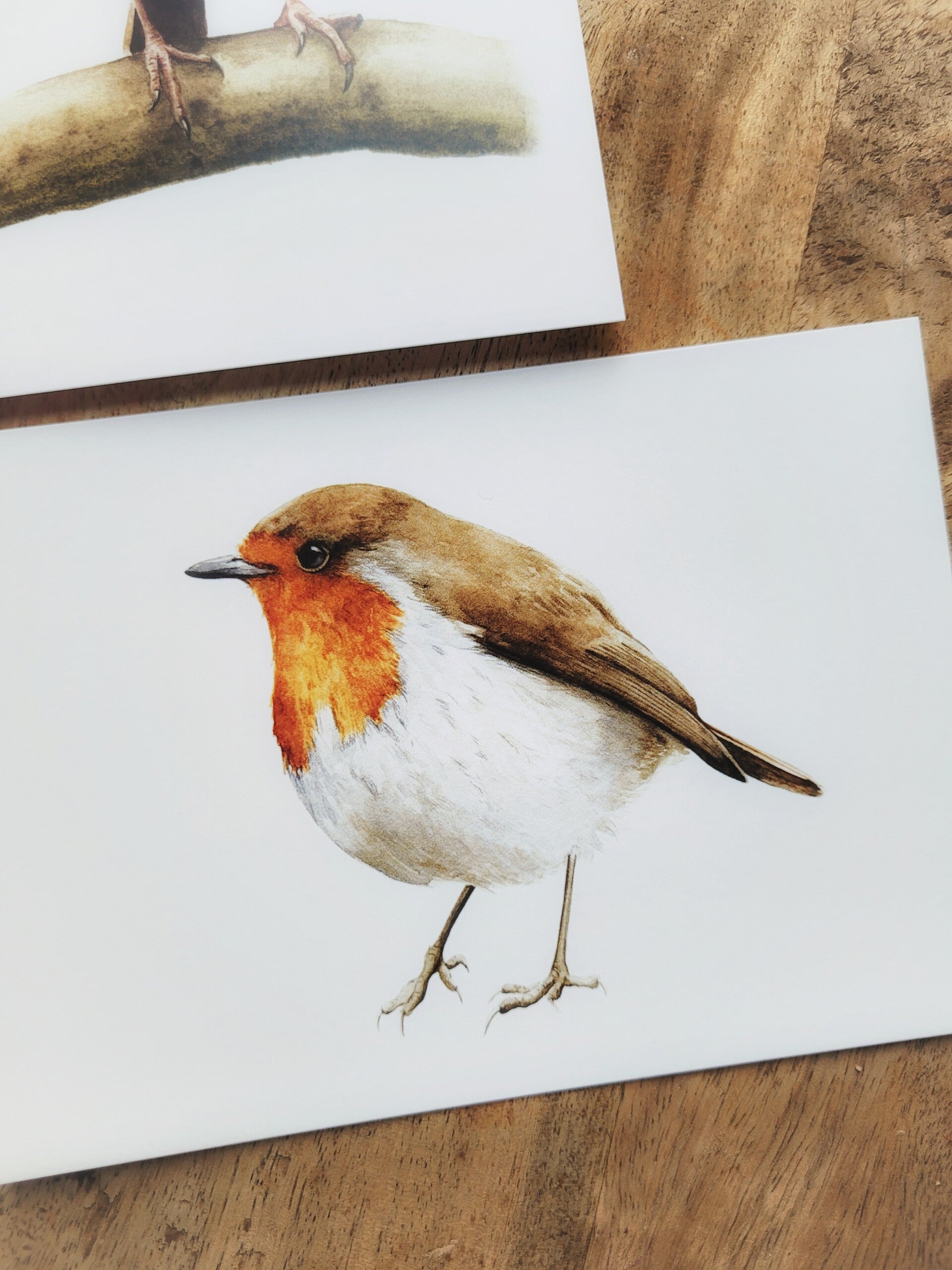Deze set bestaat uit 4 ansichtkaarten op A6 formaat van verschillende roodborstjes geschilderd met aquarelverf. De originele aquarellen (indien beschikbaar) vind je hier.