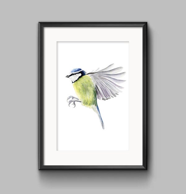 Deze originele aquarel van een pimpelmeesje maakt onderdeel uit van een persoonlijk project waarbij ik vierentwintig tuinvogels heb geschilderd om ze uiteindelijk samen te brengen tot één grote poster geïnspireerd op oude schoolplaten (je vindt hem hier)