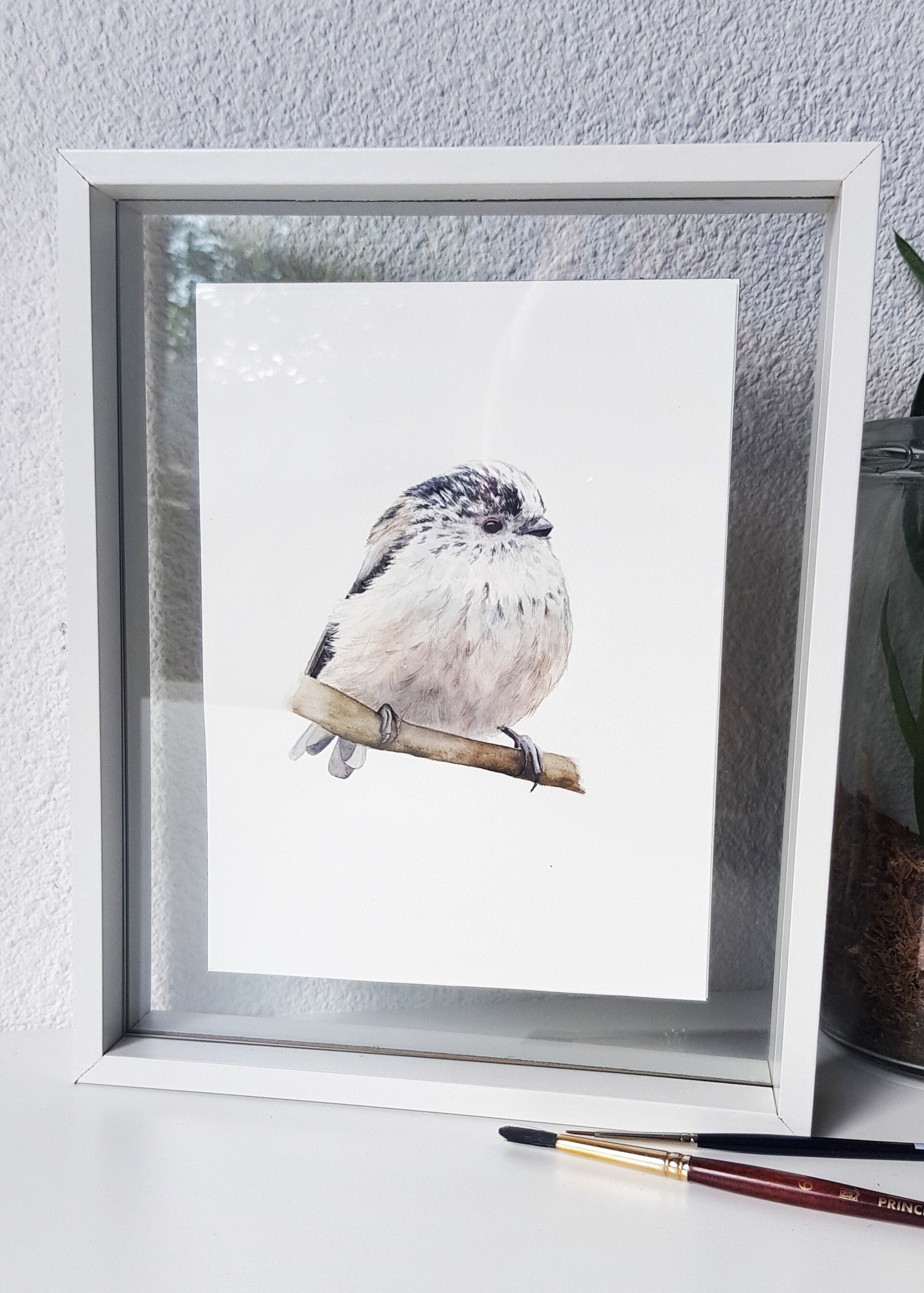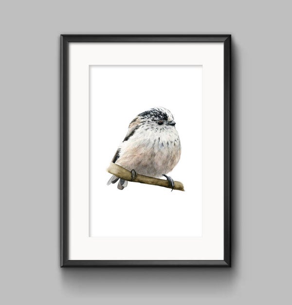 Deze originele aquarel van een staartmeesje maakt onderdeel uit van een persoonlijk project waarbij ik vierentwintig tuinvogels heb geschilderd om ze uiteindelijk samen te brengen tot één grote poster geïnspireerd op oude schoolplaten (je vindt hem hier)