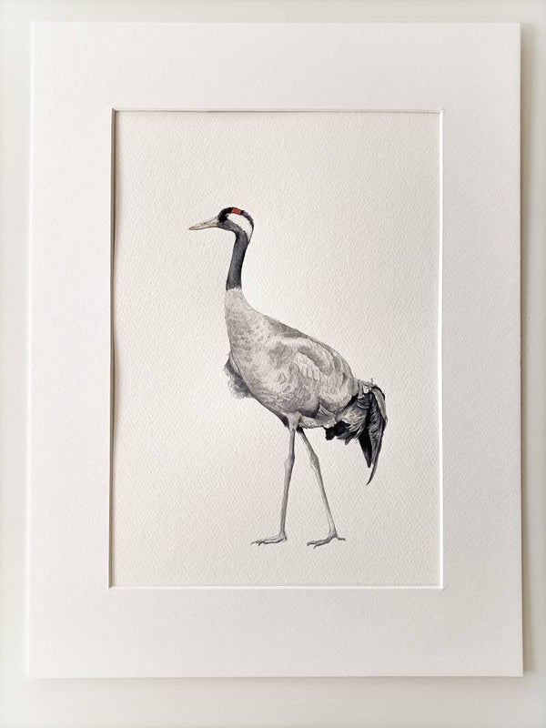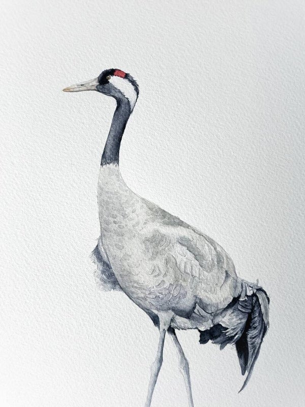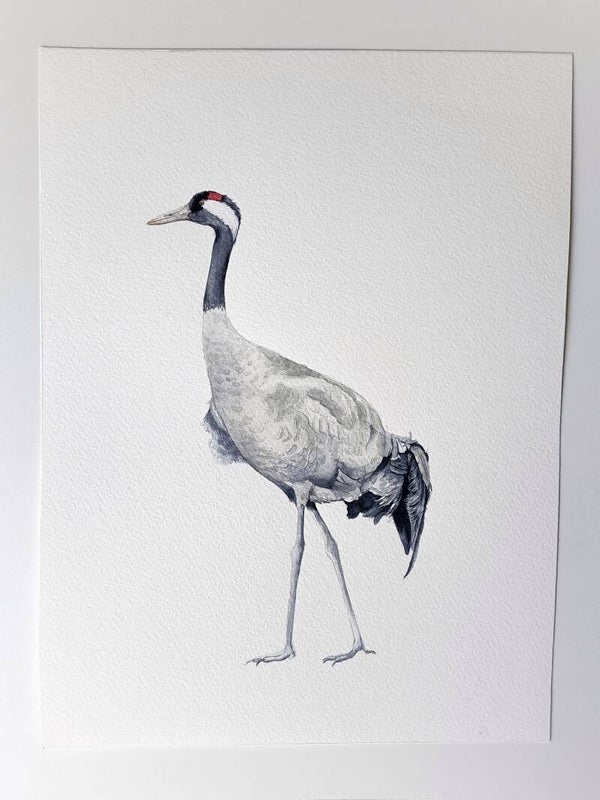 Deze originele aquarel van een Kraanvogel heb ik in 2021 geschilderd voor een reeds te verschijnen vogelboek. Het boek zal in april 2022 uitkomen.