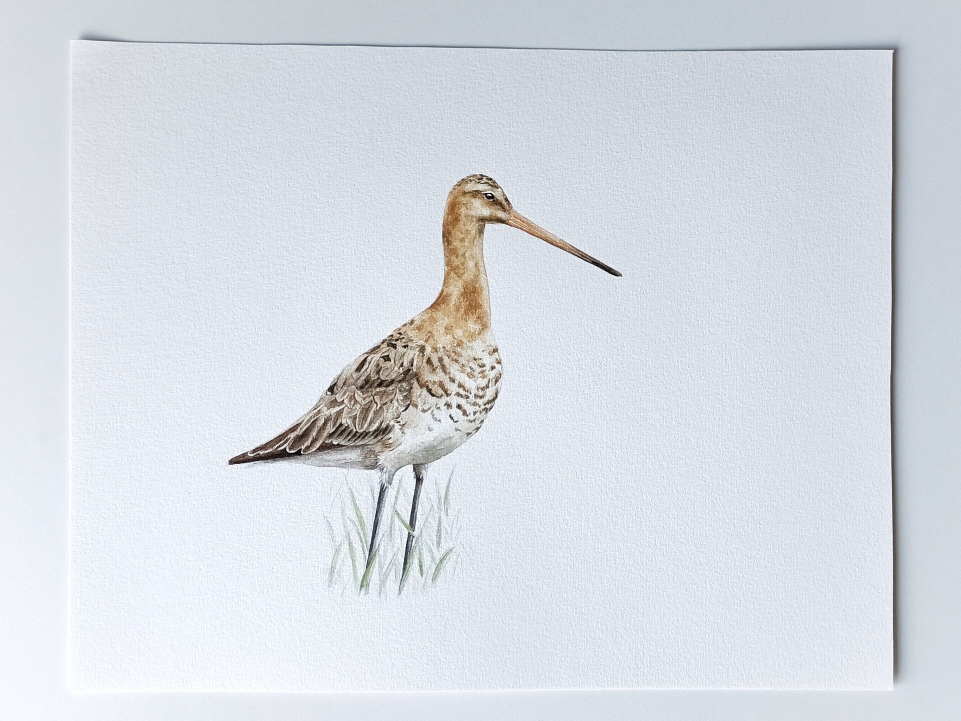 Deze originele aquarel van een Grutto heb ik in 2021 geschilderd voor een reeds te verschijnen vogelboek. Het boek zal in april 2022 uitkomen.