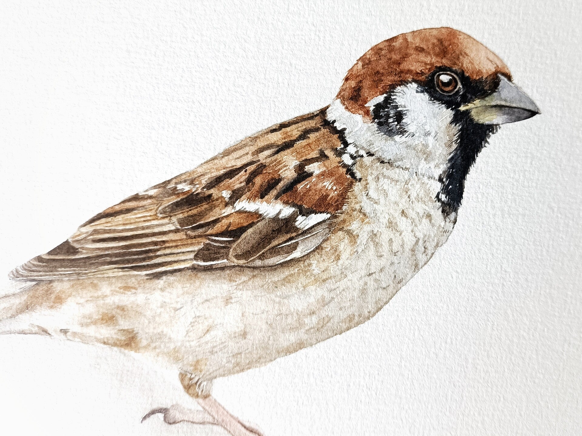 Deze originele aquarel van een ringmus heb ik in 2021 geschilderd voor een reeds te verschijnen vogelboek. Het boek zal in april 2022 uitkomen.