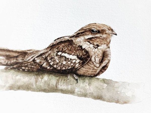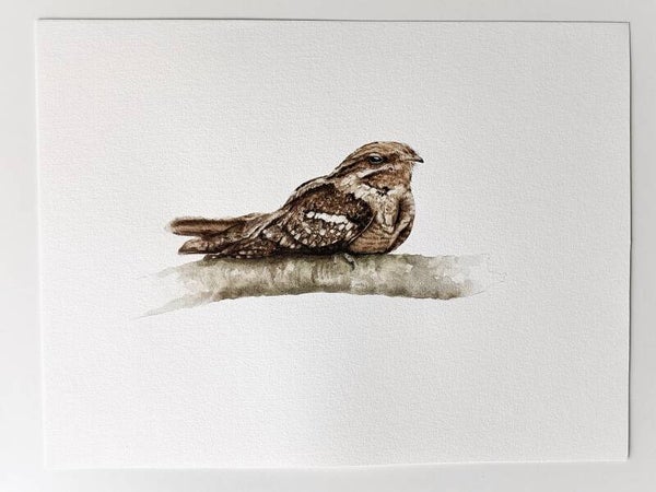 Deze originele aquarel van een Nachtzwaluw heb ik in 2021 geschilderd voor een reeds te verschijnen vogelboek. Het boek zal in april 2022 uitkomen.