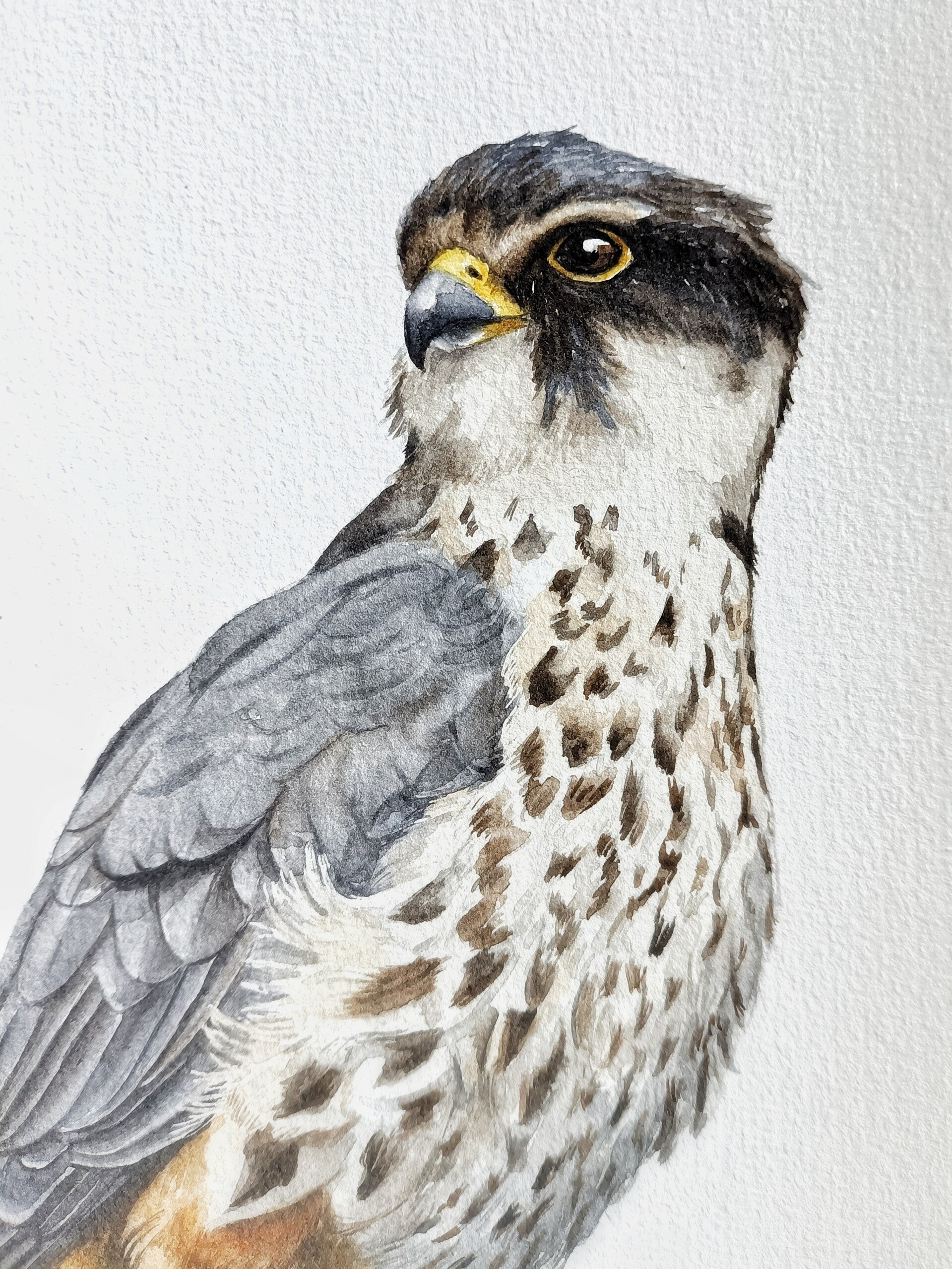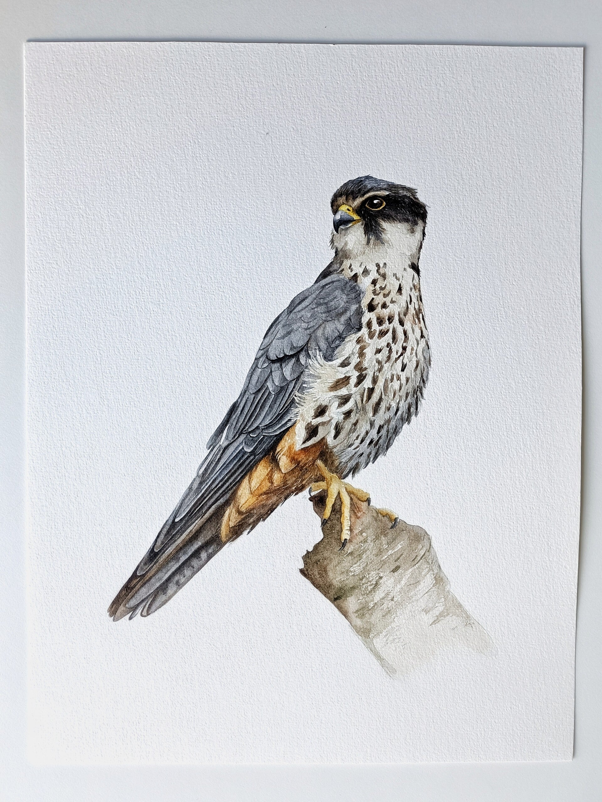 Deze originele aquarel van een Boomvalk heb ik in 2021 geschilderd voor een reeds te verschijnen vogelboek. Het boek zal in april 2022 uitkomen.
