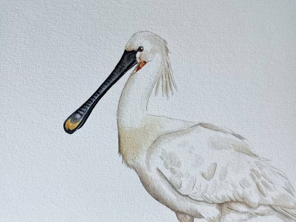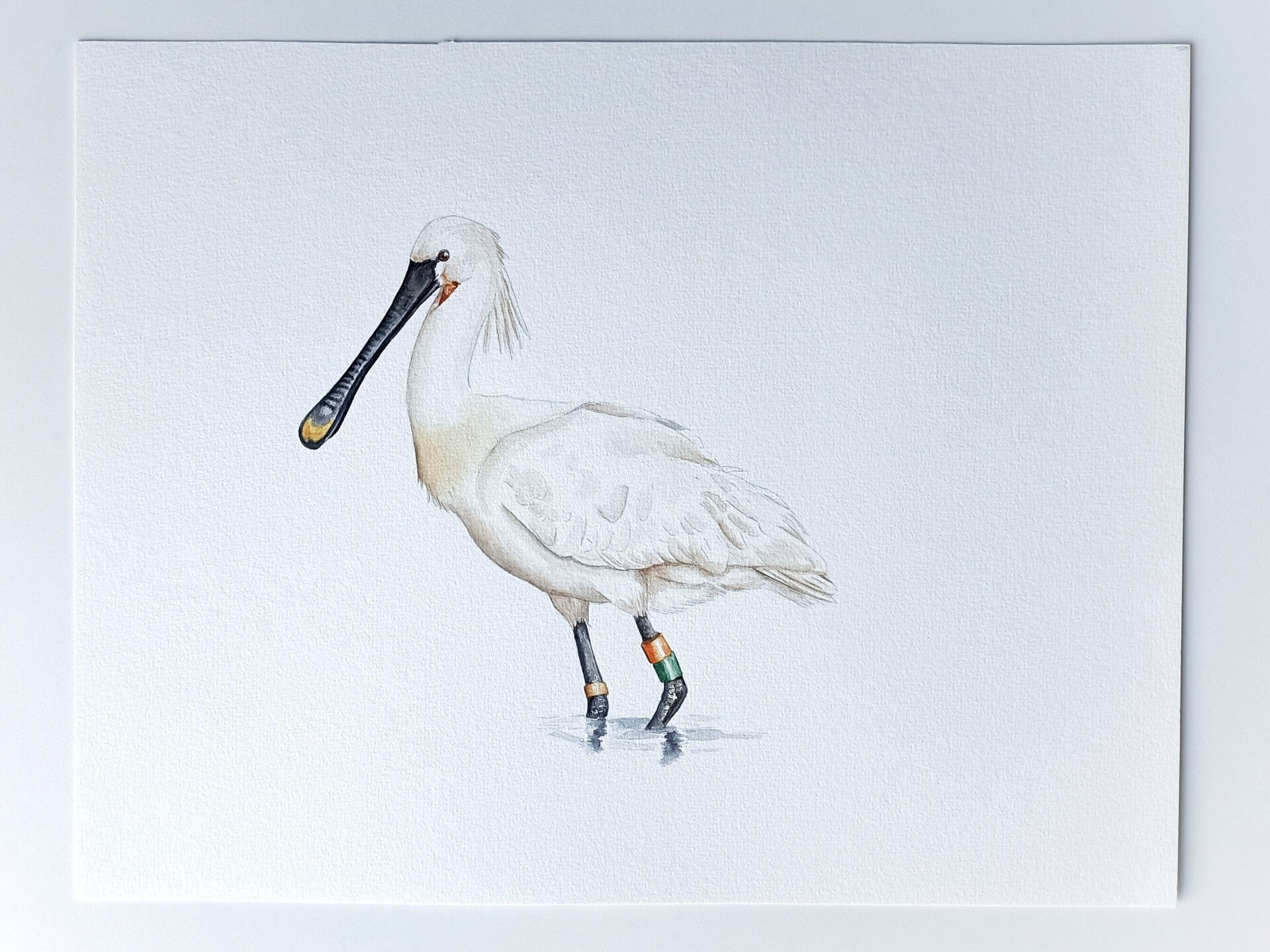 Deze originele aquarel van een geringe lepelaar heb ik in 2021 geschilderd voor een reeds te verschijnen vogelboek. Het boek zal in april 2022 uitkomen.