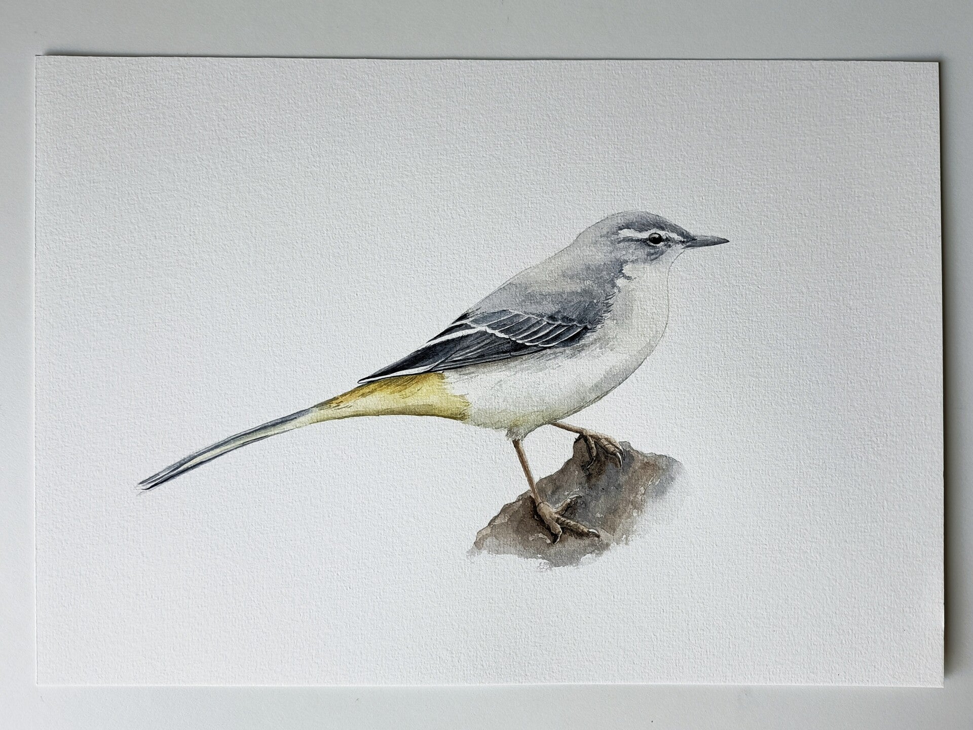 Deze originele aquarel van een Grote Gele Kwikstaart heb ik in 2021 geschilderd voor een reeds te verschijnen vogelboek. Het boek zal in april 2022 uitkomen.