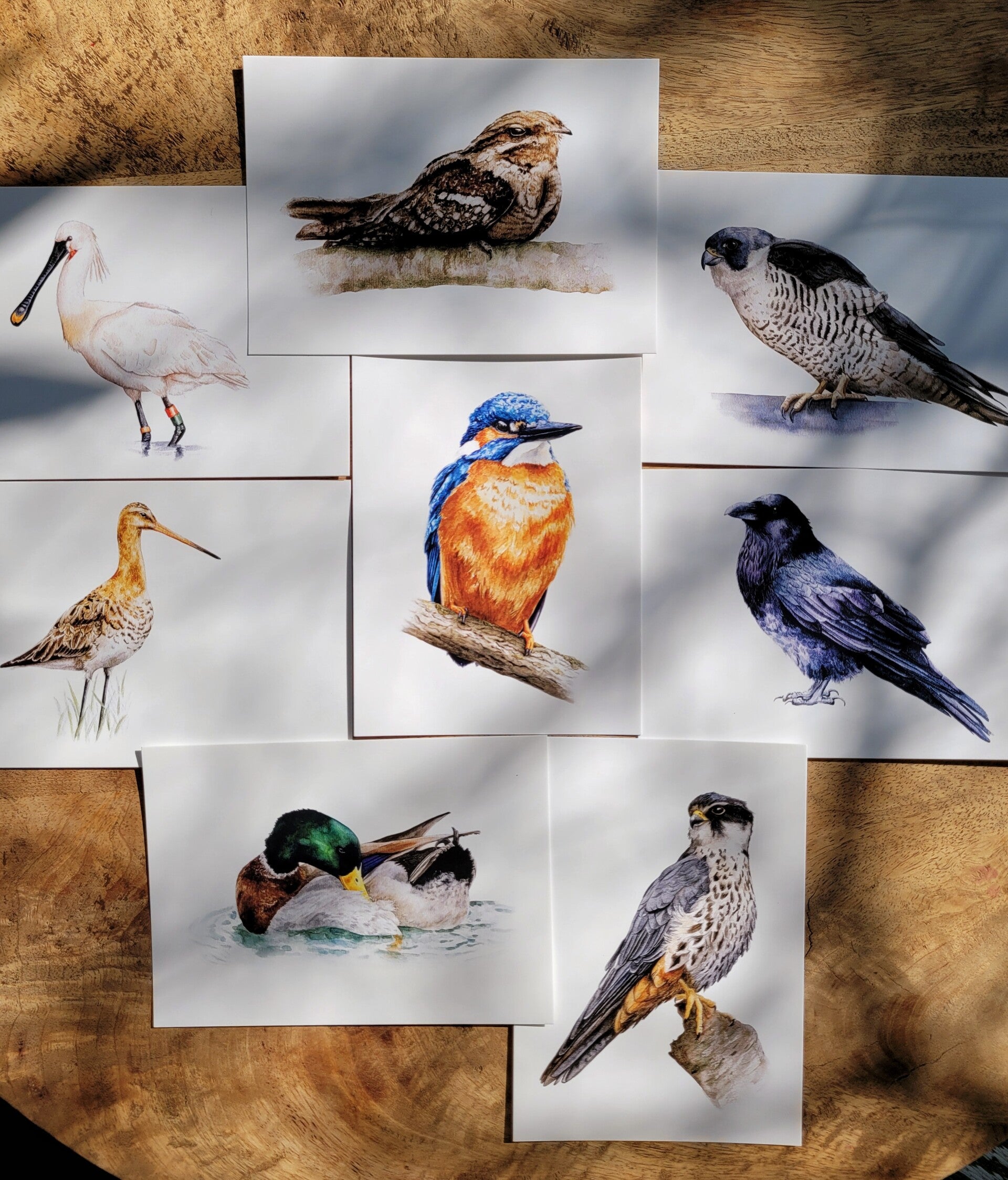 Deze set bestaat uit 8 ansichtkaarten op A6 formaat van een selectie van de vogels uit het Vogeldoeboek dat in april 2022 is verschenen. Ik mocht dit boek illustreren voor de uitgever Terra Lannoo. In totaal zijn er 36 vogels te vinden in het boek en daar heb ik de mooiste 8 uit gekozen. Als je specifiek op zoek bent naar tuinvogels, neem dan eens een kijkje bij mijn tuinvogelposter of kaartensets.