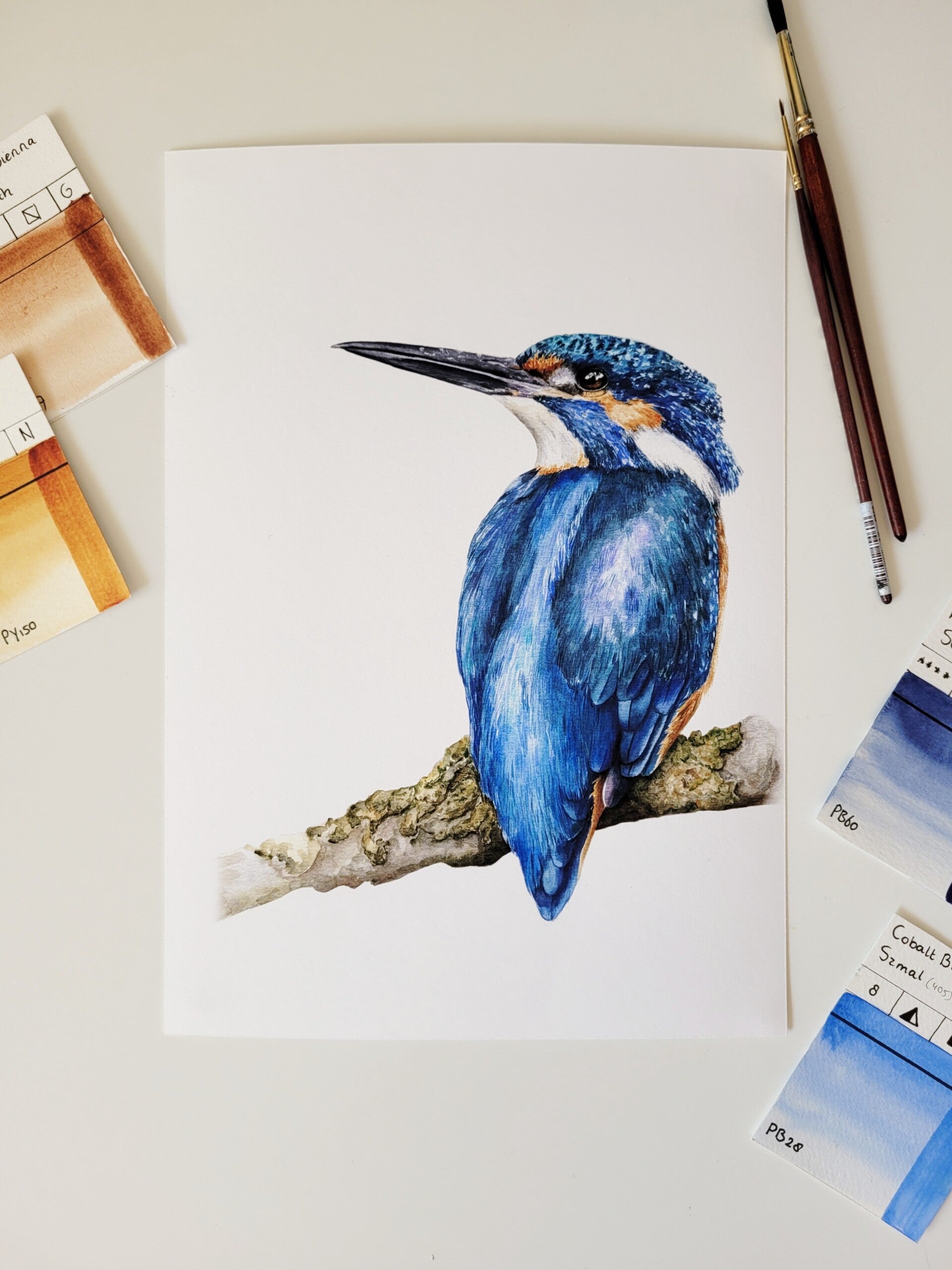 Een van mijn favoriete aquarellen van een ijsvogel. Het origineel schilderde ik eind 2021 en nu is hij beschikbaar als giclée.