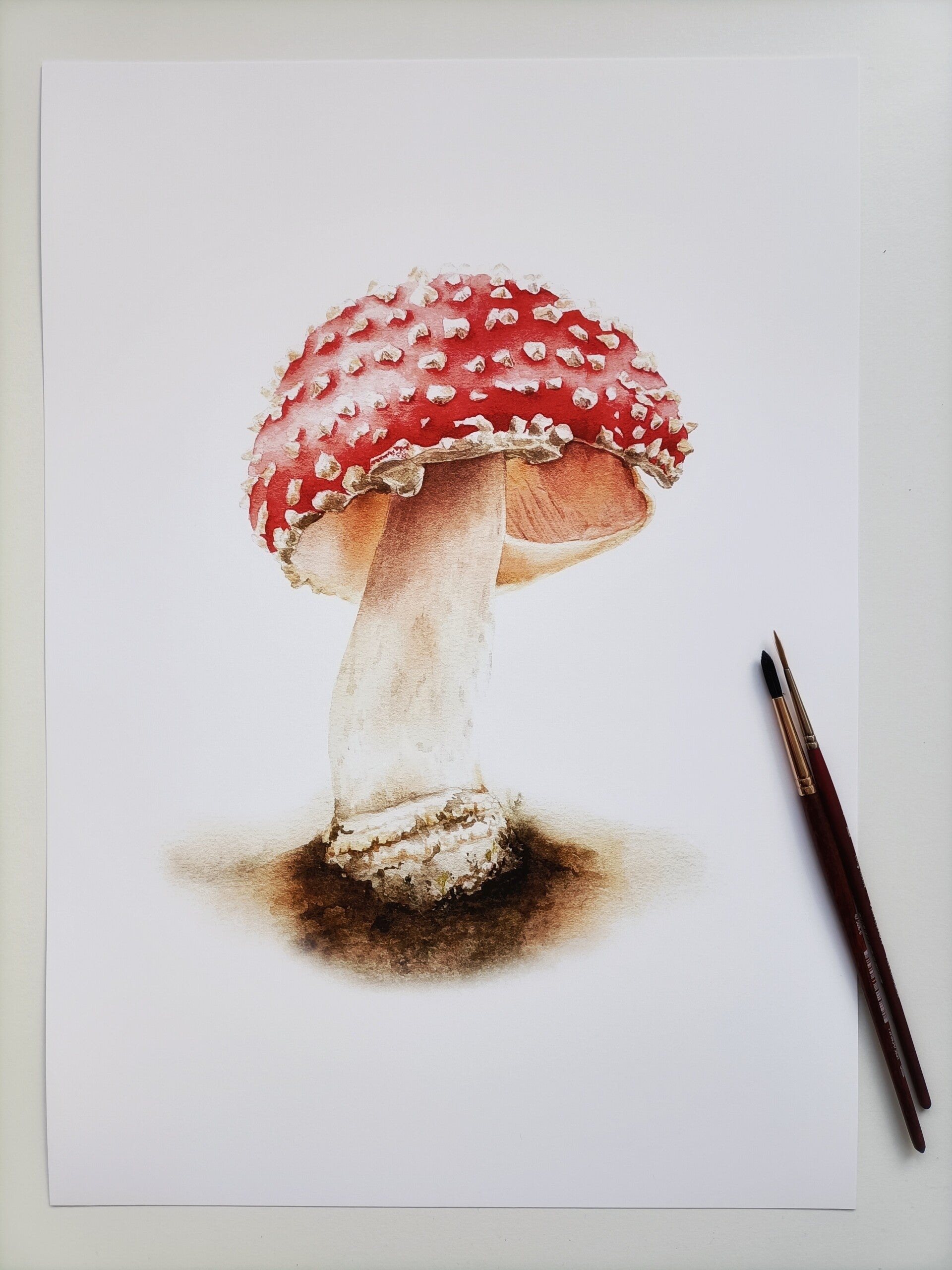 Deze vliegenzwam schilderde ik in de herst van 2022.
