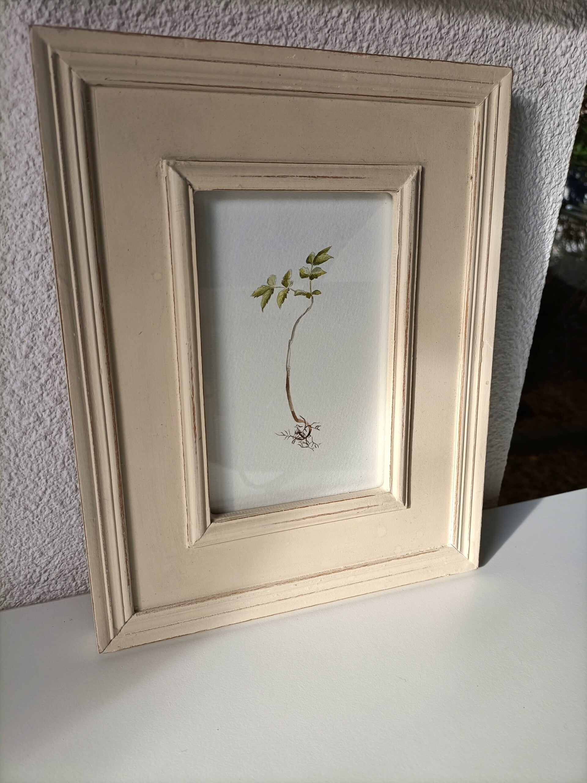 Op zoek mooi cadeau voor jezelf of voor een ander? Speur niet verder! Deze aquarel is helemaal klaar om weg te geven of op te hangen. Dit fijne botanische werkje is ingelijst in een leuk vintage lijstje. Let op, het lijstje kan wat gebruikerssporen vertonen!